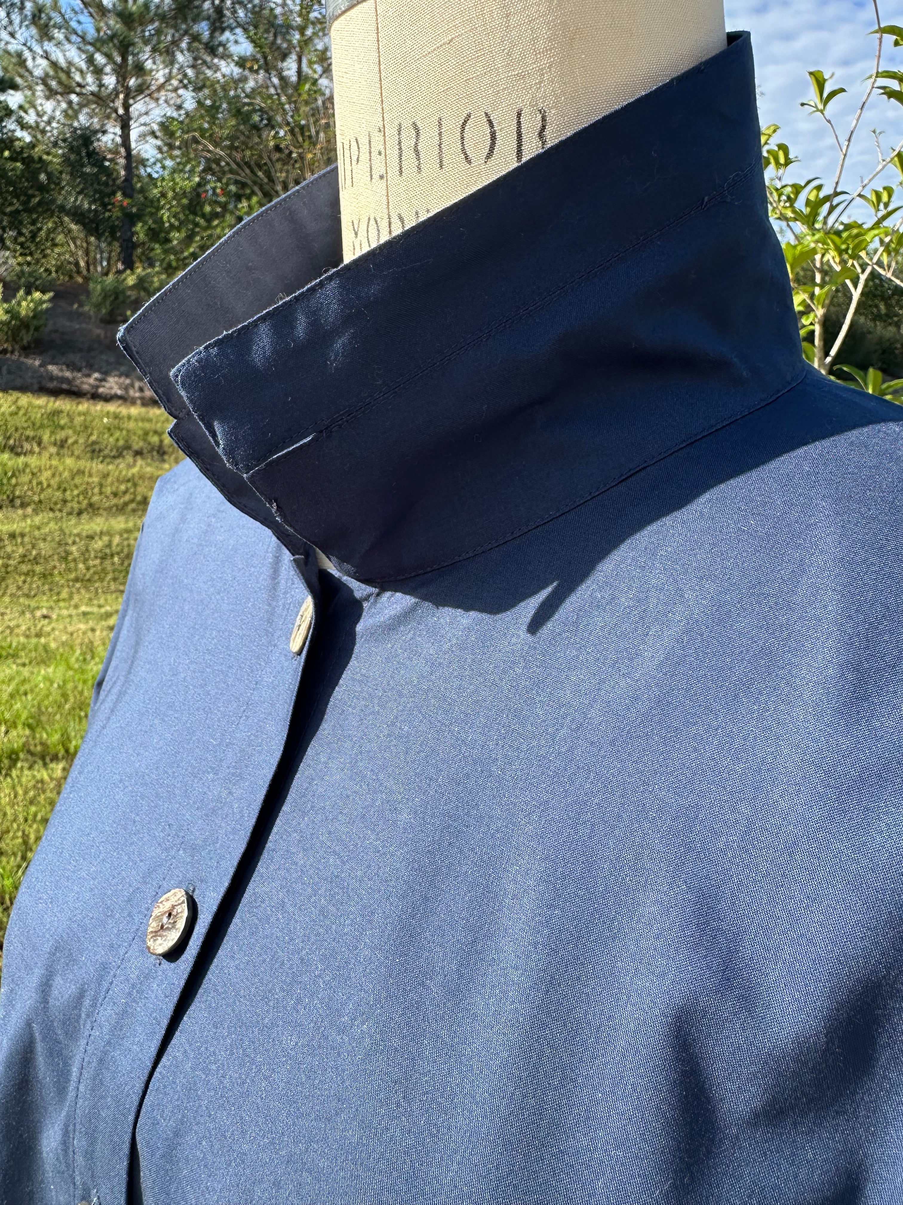 Collar is 3 " with a notch collar and and stitching detail.
